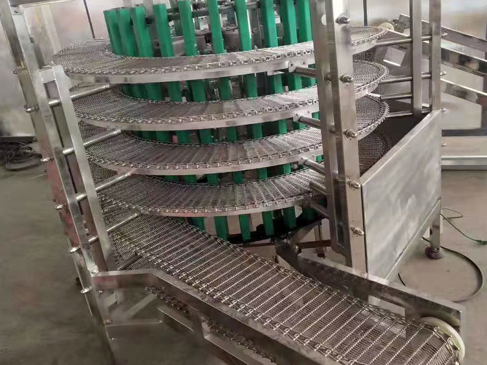 工作原理:网带是由链网或窜杆或链片固定于轨道链条上,电机驱动主动轴,链轮带动链条转动,达到机器运转效果。